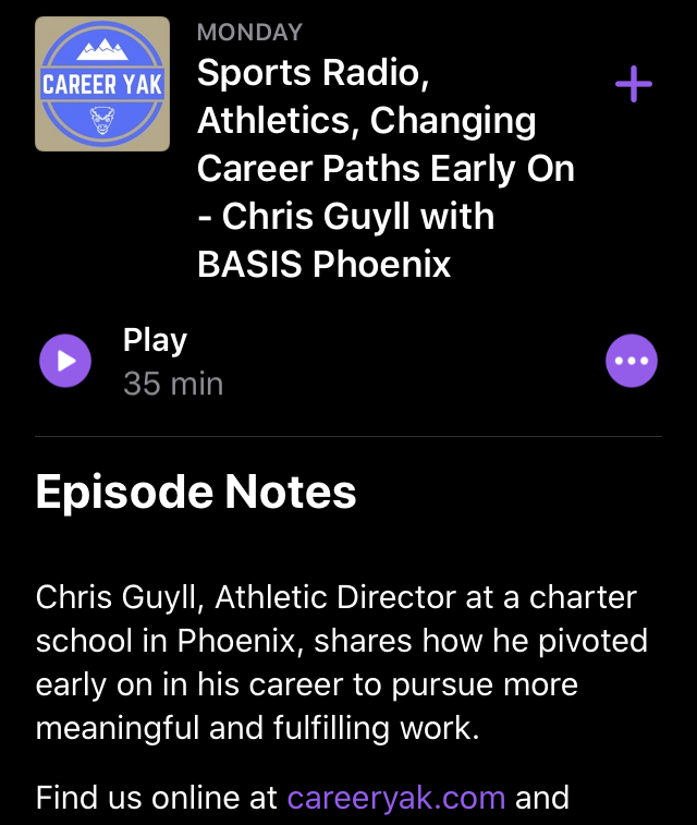 Check out the new Career Yak podcast episode where we talk sports and athletics with Chris Guyll. Listen on any of your favorite podcasts directories. Or click one of the links below!
